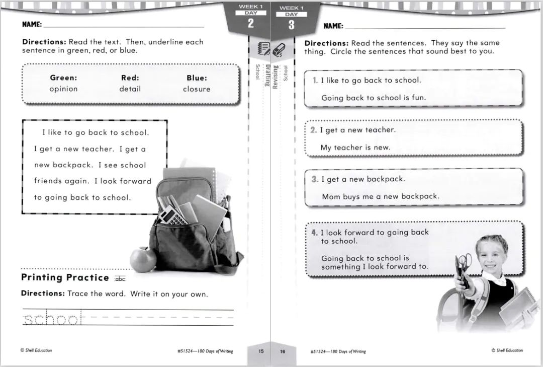 每本书共有18个主题,以2个单元为一组,其中既包含完整的写作过程,也有作品分析,改错、给学生的写作贴士等形式各样的每日写作练习活动。