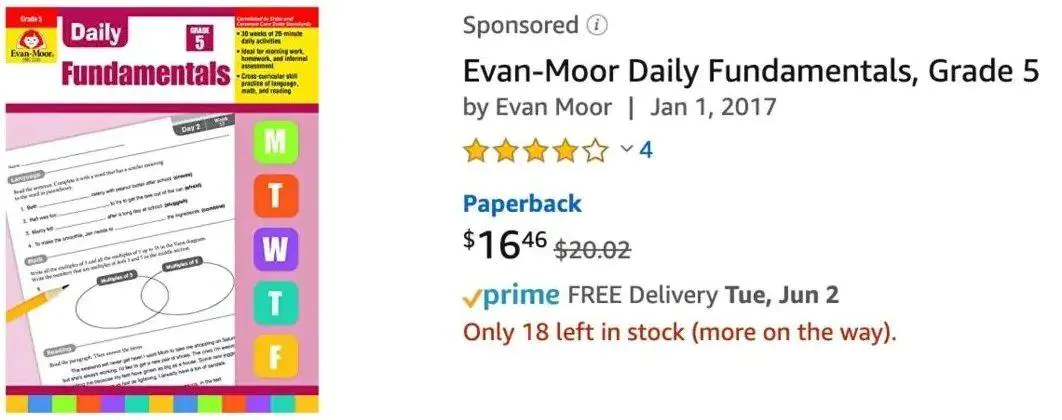 今天给大家分享一套 Evan-Moor 出版的Daily Fundamentals,从G1-G6共6个级别,特别适合5-12岁的孩子使用。