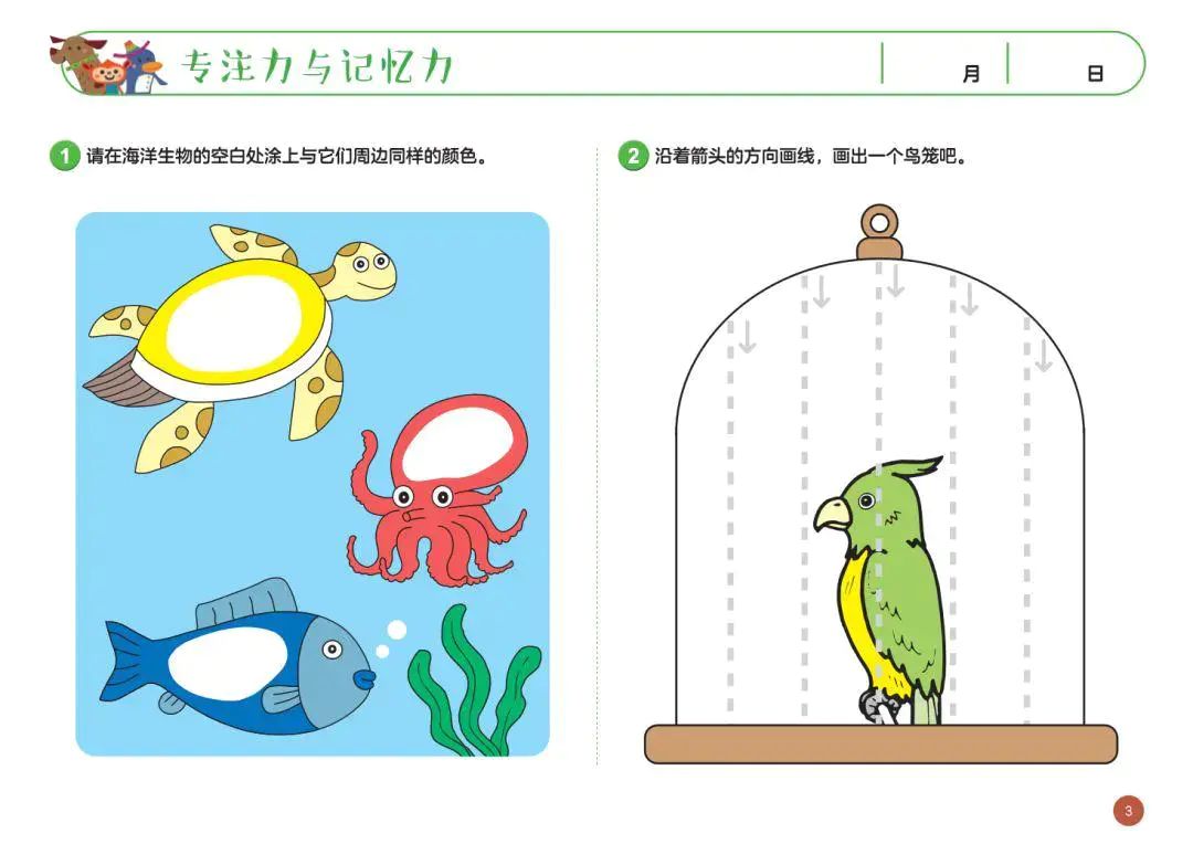 这样长时+短时的交叉训练,能非常有效地提高孩子对细节的观察能力和记忆能力,帮助孩子养成良好的观察习惯,无形中延伸了孩子对事物、知识点的记忆长久性。