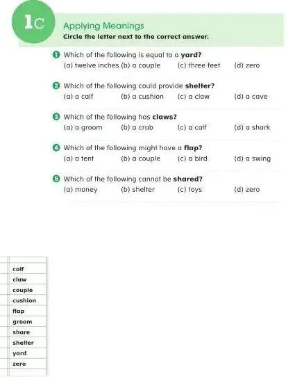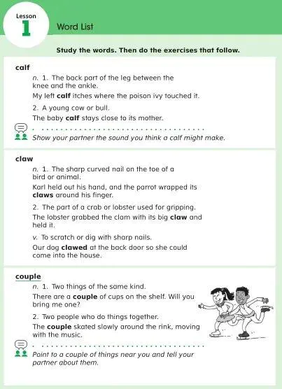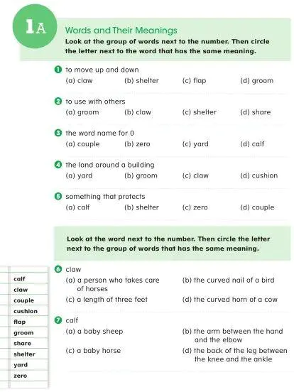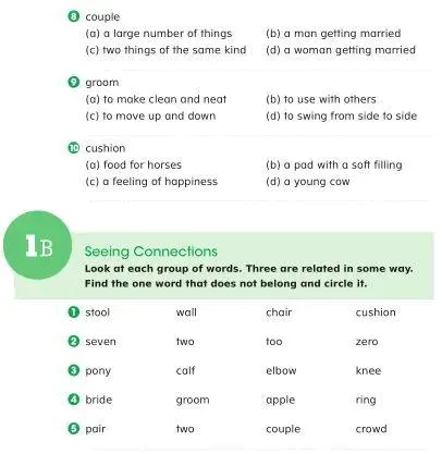 第三部分,是词汇的辨析找出一组此中不同的词,下面是2年级第一课的难度;